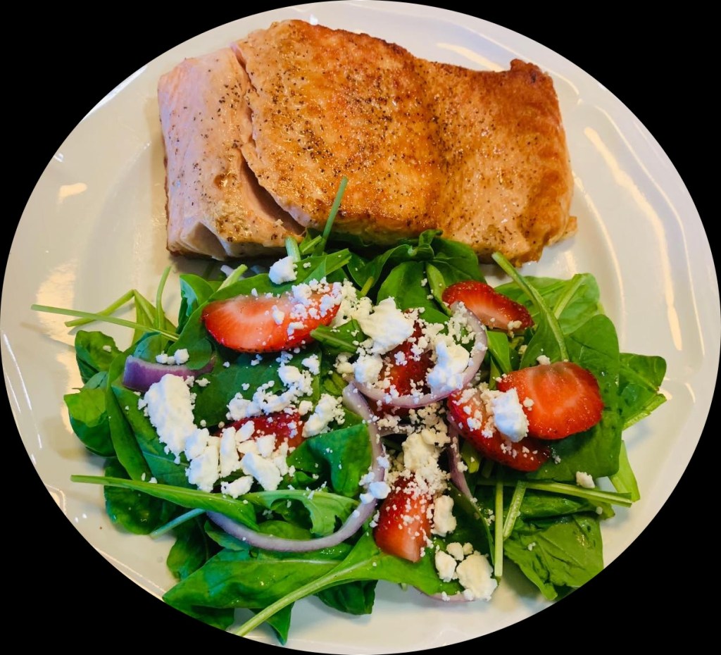 2 responses to “Salmon with Spinach and Strawberry Salad”