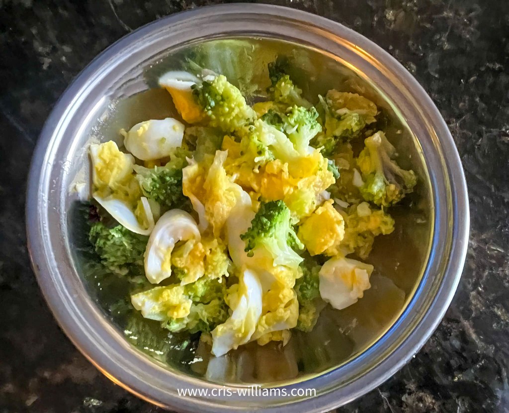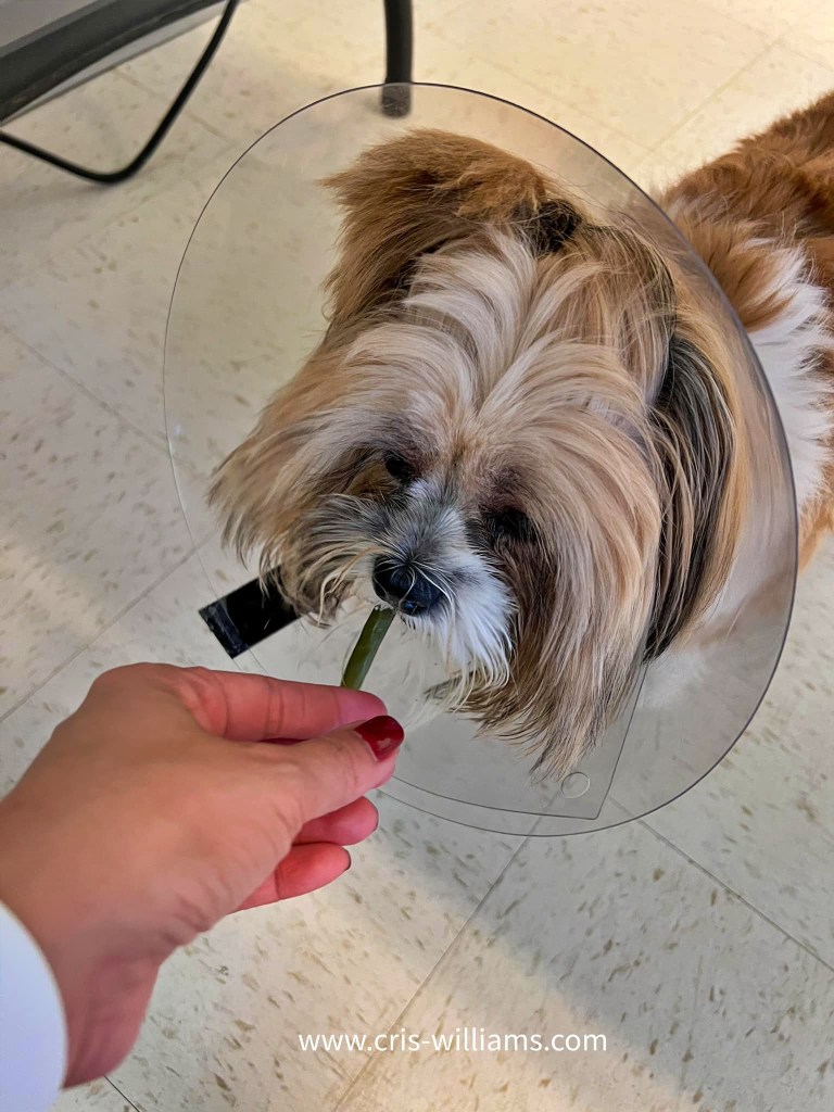 Top of the list is green beans. I am not sure what’s it is about this vegetable that he will eat it any time, whether you will feed it to him with meat or solo. This was the only food he ate when he had his recent procedures done. This photo actually was taken within the first 24 hours after his procedures that was why he was wearing a cone. Still he ate his favorite green beans.