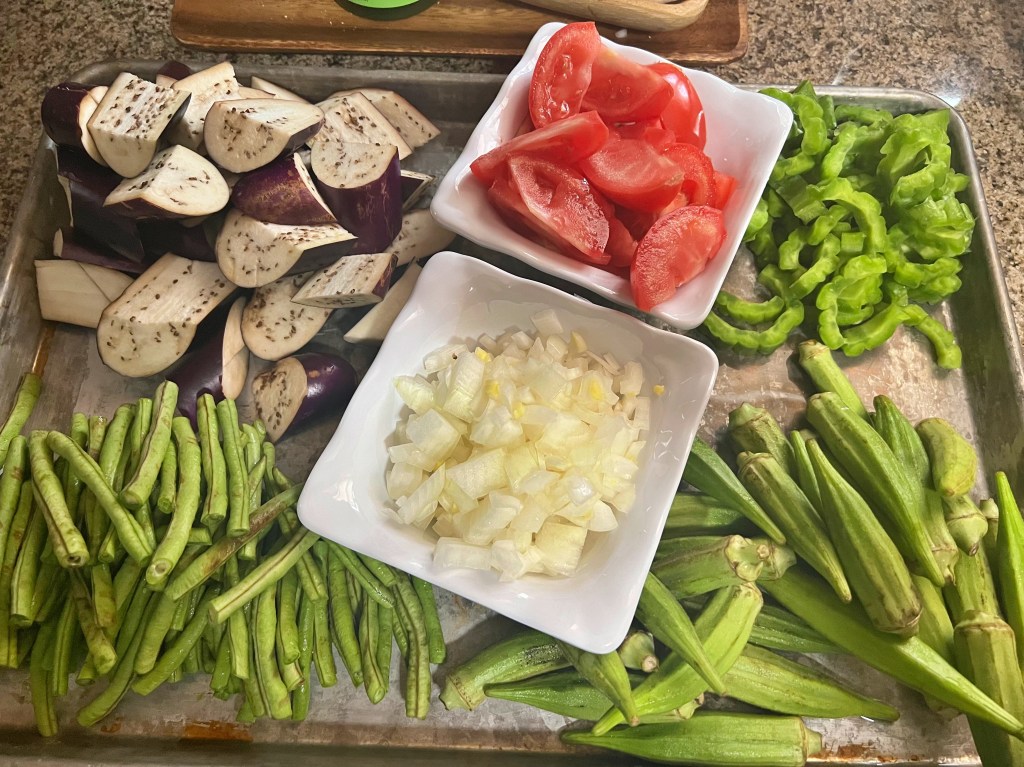 My husband is so sweet and thoughtful that he learned how to cook and of course eat 😁 Filipino Food. He wanted to make sure that I will not be homesick being away from my country of birth and it’s delicious food. I will share with you today one of the Filipino dishes that I love to eat and he learned to cook, Pinakbet. I called it Pinakbet Ala LeRoy because he prepared and cooked it so quickly, military (veteran that he is) style. 😄