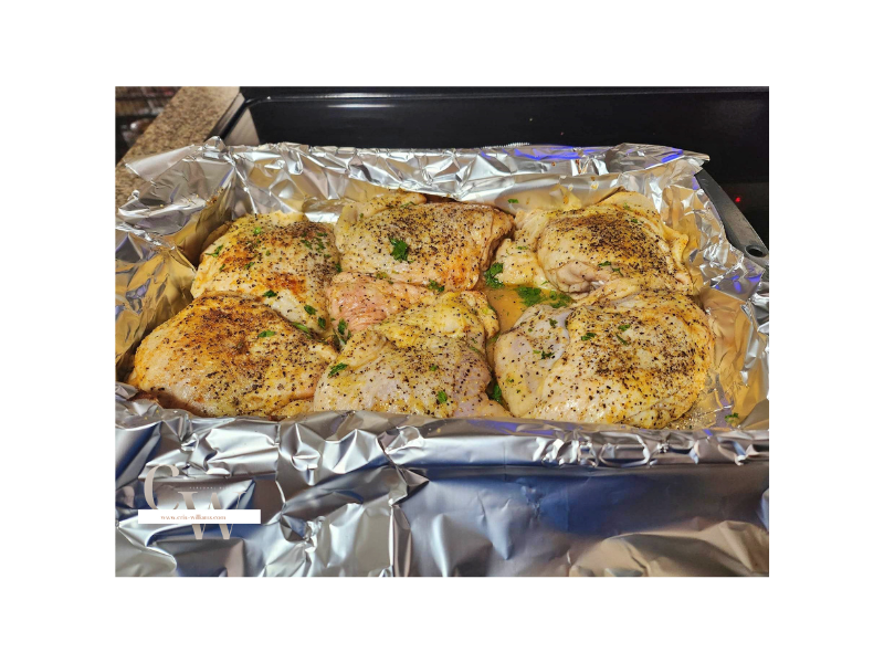 - Baked it until the chicken thigh skin is crispy.